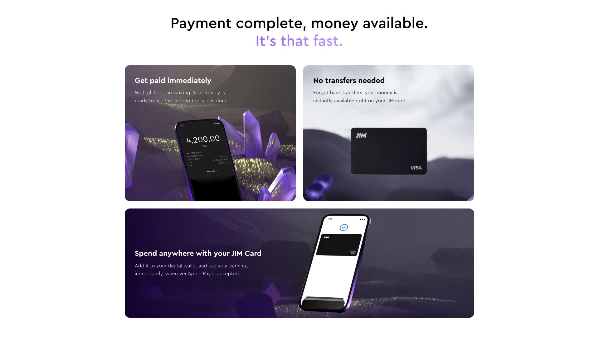 Design and development of JIM "Tap to Pay" page, highlighting seamless mobile payments via NFC. Built with Webflow, Vanilla JS, lottie and GSAP to deliver smooth, engaging interactions and clear messaging.